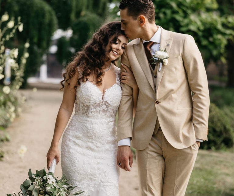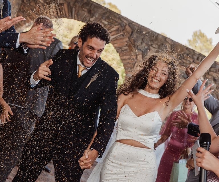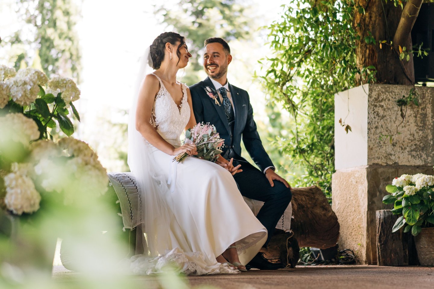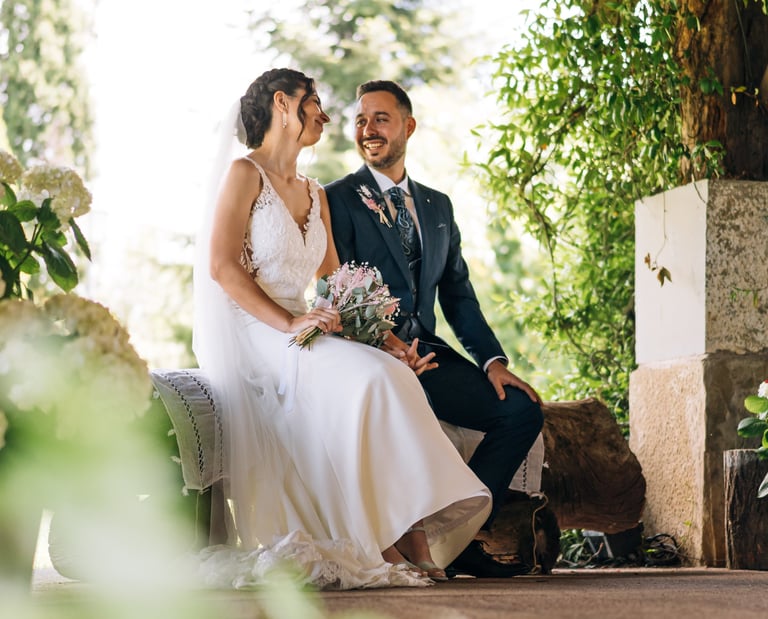 Una pareja cuya boda en 'El Molí de la Torre' y ceremonia en 'La Basílica de Castelló d'Empúries